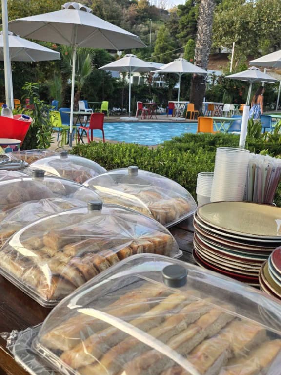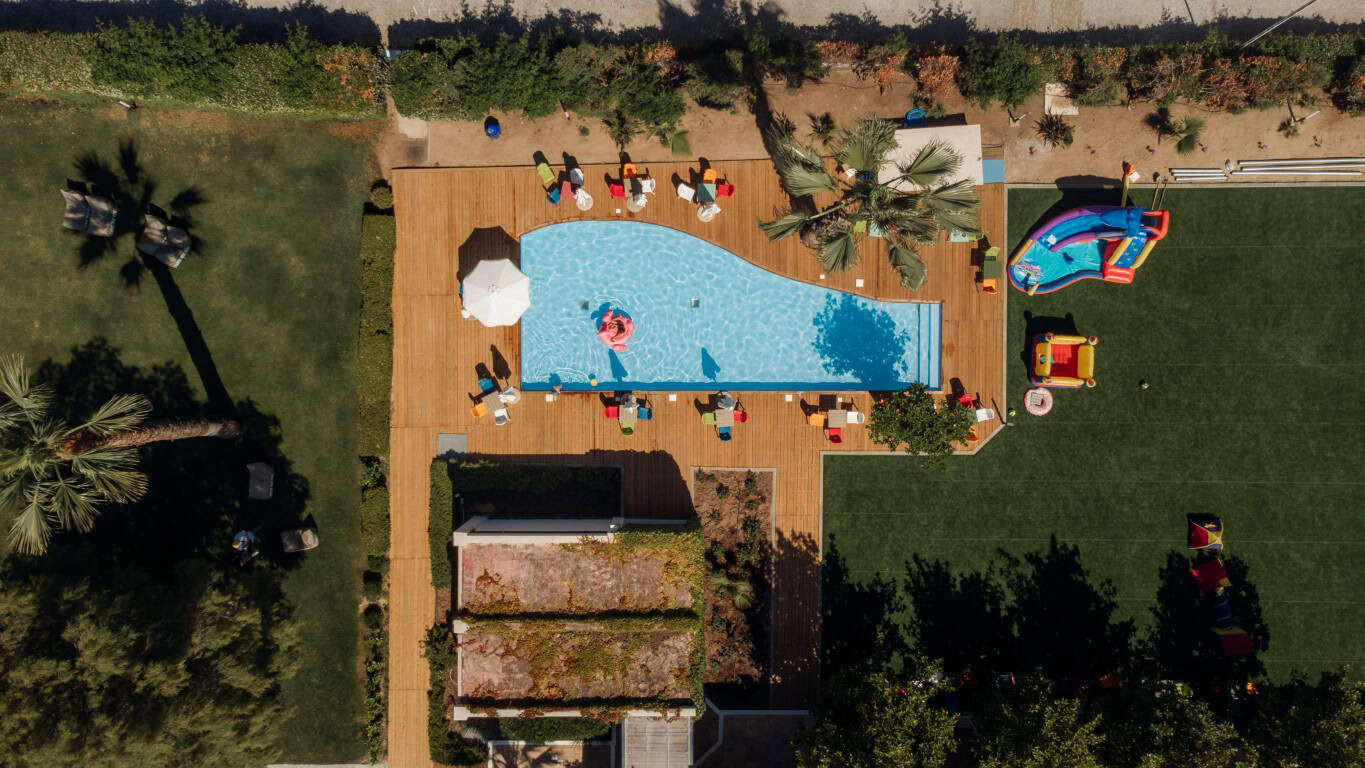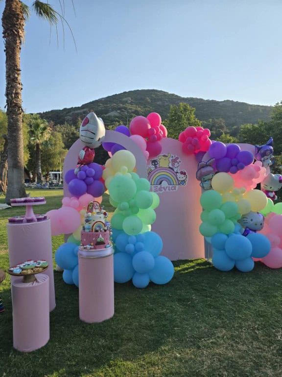 Τα παιδικά πάρτι πραγματοποιούνται στον διαμορφωμένο χώρο της μικρής πισίνας, προσφέροντας στα παιδιά δροσερές στιγμές παιχνιδιού σε ένα ασφαλές και προσεγμένο περιβάλλον. Ο χώρος συνδυάζει φυσική ομορφιά και άνεση, δημιουργώντας το ιδανικό σκηνικό για μια ξεχωριστή γιορτή.