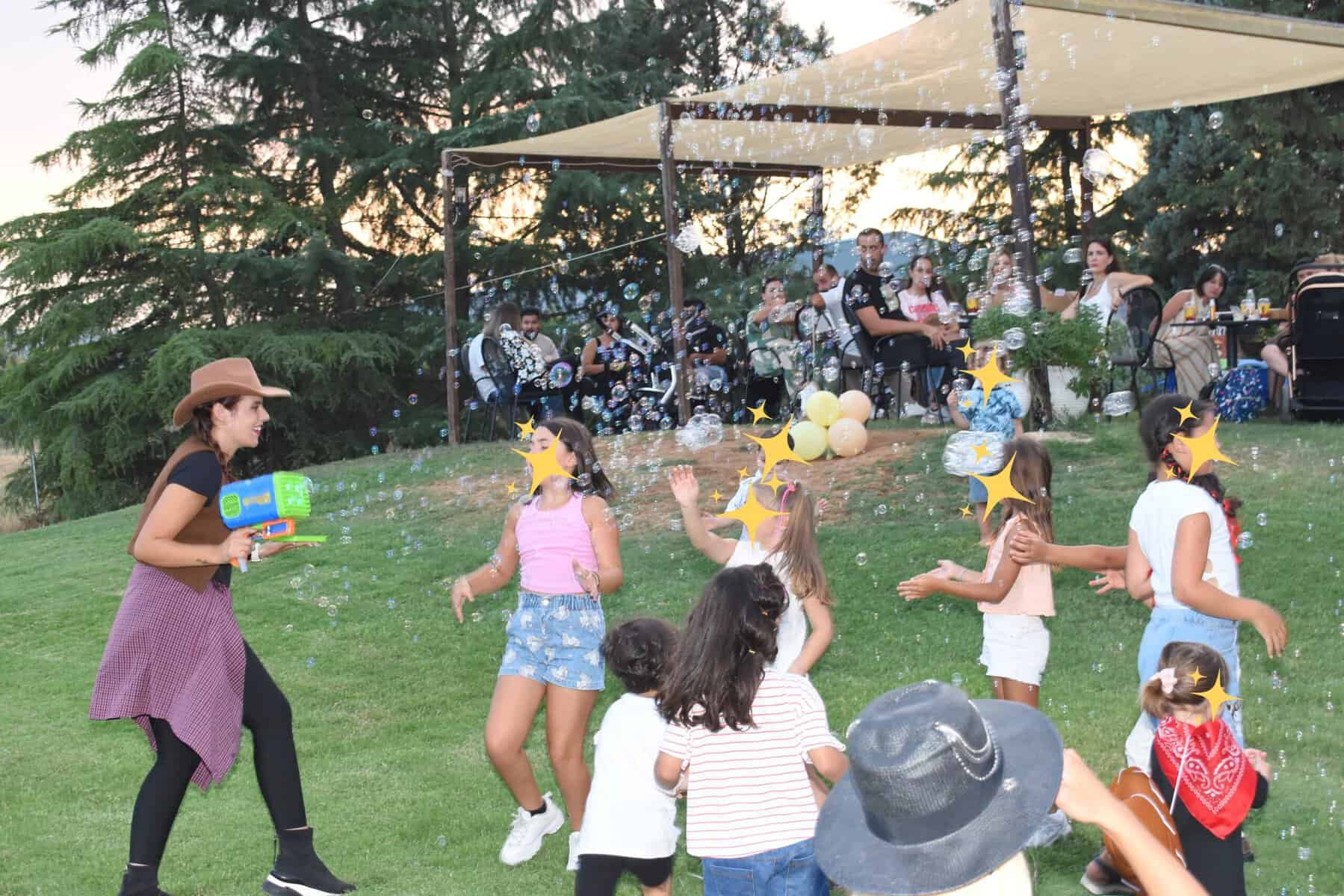 Στα παιδικά μας πάρτι, τα παιδιά απολαμβάνουν ελεύθερο παιχνίδι, δραστηριότητες στη φύση, βόλτες με πόνυ και άλογα, θεματικά προγράμματα, animation και δυνατότητα προσαρμογής ανάλογα με την ηλικία και τα ενδιαφέροντά τους. Ο χώρος προσφέρεται αποκλειστικά για την παρέα, προσφέροντας άνεση και ιδιωτικότητα.