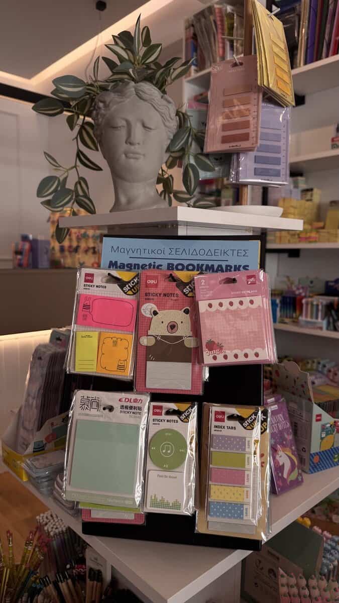 Επίσης, μπορείτε να βρείτε όλα όσα χρειάζεστε για το σχολείο, το γραφείο και τον ελεύθερο χρόνο: μεγάλη ποικιλία από βιβλία για μικρούς και μεγάλους, σχολικά είδη, γραφική ύλη, δημιουργικά παιχνίδια και εποχιακά είδη.