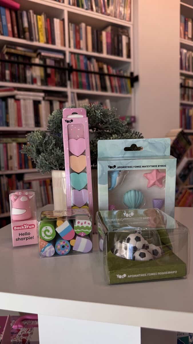 Στο βιβλιοπωλείο μας θα βρείτε μια ξεχωριστή ποικιλία από μικρά αλλά προσεγμένα δωράκια, ιδανικά για να συνοδεύσουν τις παιδικές γιορτές και να ενθουσιάσουν τους μικρούς καλεσμένους. Προσφέρουμε δημιουργικές και χρήσιμες επιλογές, από χαριτωμένα μολύβια, τετράδια και στυλό, μέχρι παραμυθάκια τσέπης, δημιουργικά σετ και πρωτότυπα αξεσουάρ, όλα επιλεγμένα με αγάπη, ώστε να συνδυάζουν ποιότητα, φαντασία και προσιτή τιμή. Οι γονείς μπορούν να βρουν εύκολες και όμορφες λύσεις μετατρέποντας κάθε παιδικό πάρτι σε μια αξέχαστη εμπειρία.