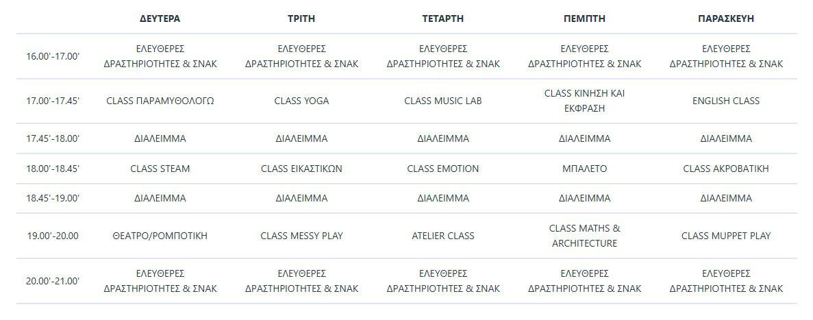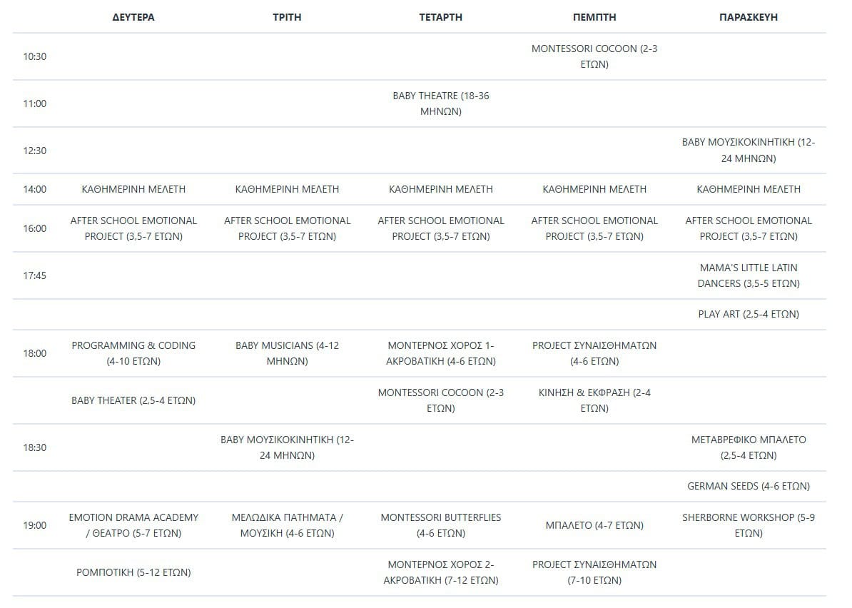 Πρόγραμμα Απογευματινών Δραστηριοτήτων 2025 – 2026